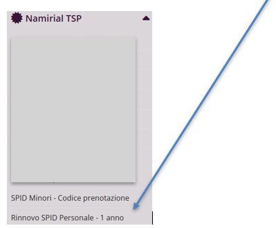 Selezionare la voce di prodotto rinnovo spid personale 1 anno dal menù a sinistra