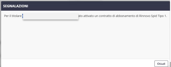 Se il titolare Spid ha già effettuato il rinnovo, all’ inserimento del codice fiscale verrà visualizzato questo messaggio (così da evitare un eventuale pagamento doppio).