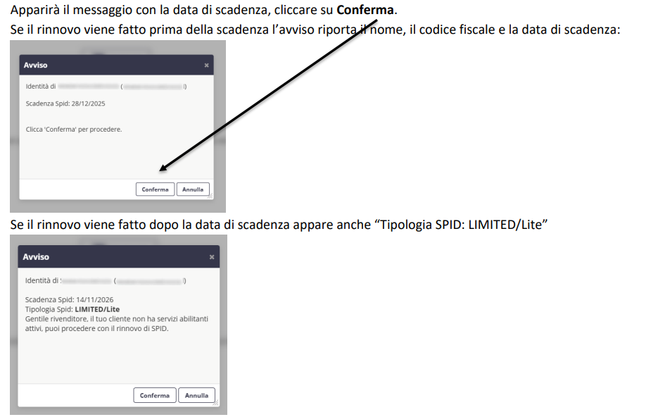 È necessario fare attenzione che la data di scadenza del servizio abilitante sia successiva alla data di scadenza dello SPID.