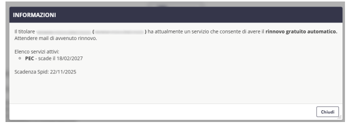 Esempio: se il titolare non rinnoverà la PEC, SPID scadrà il 22/11/2027